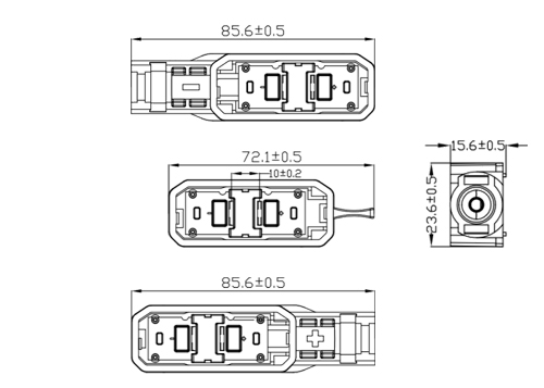 防火等級 / Flame class UL94-V0 5VA | 可選連接器/Optional Connector CD2, EVO2,MC4 |